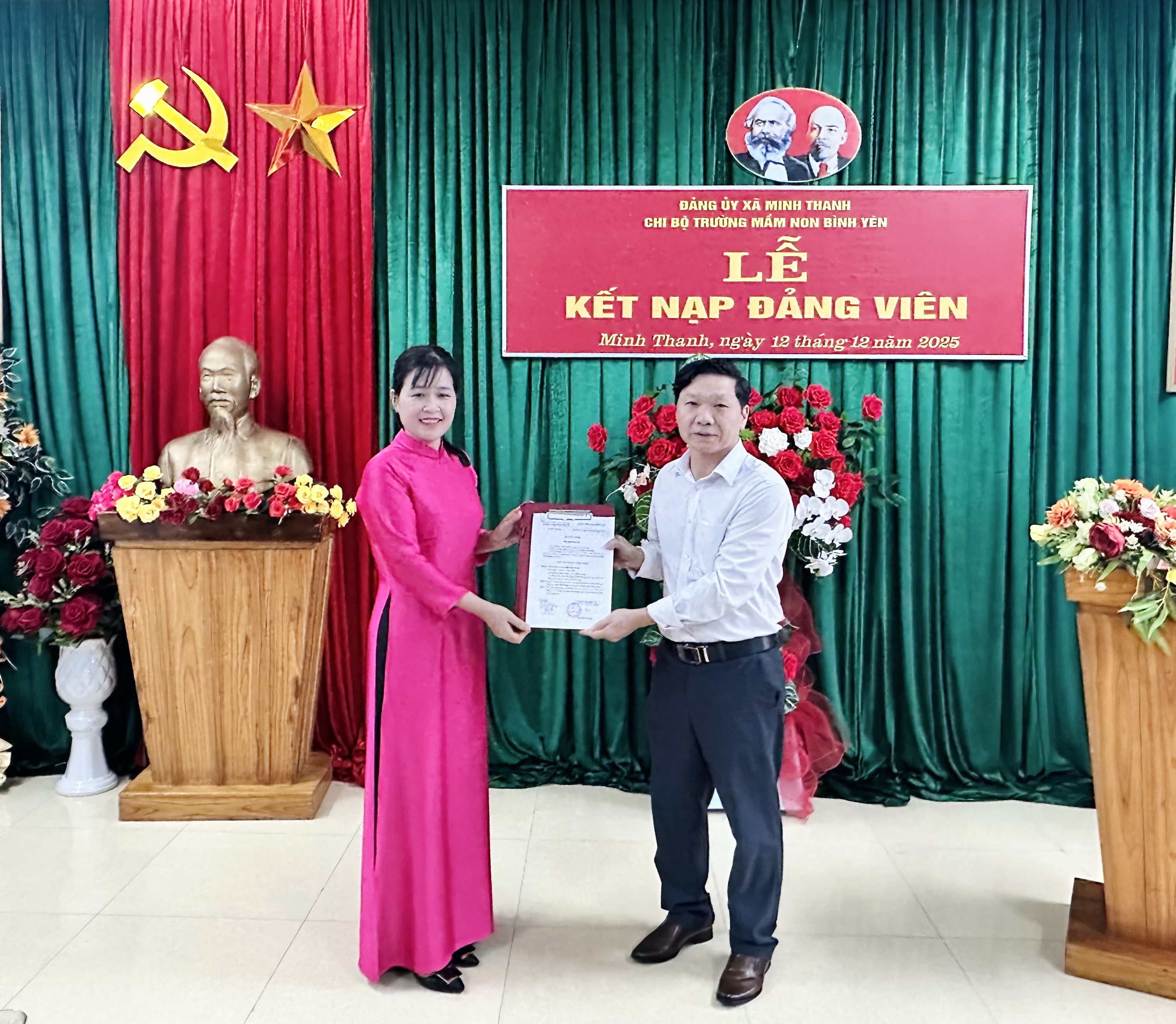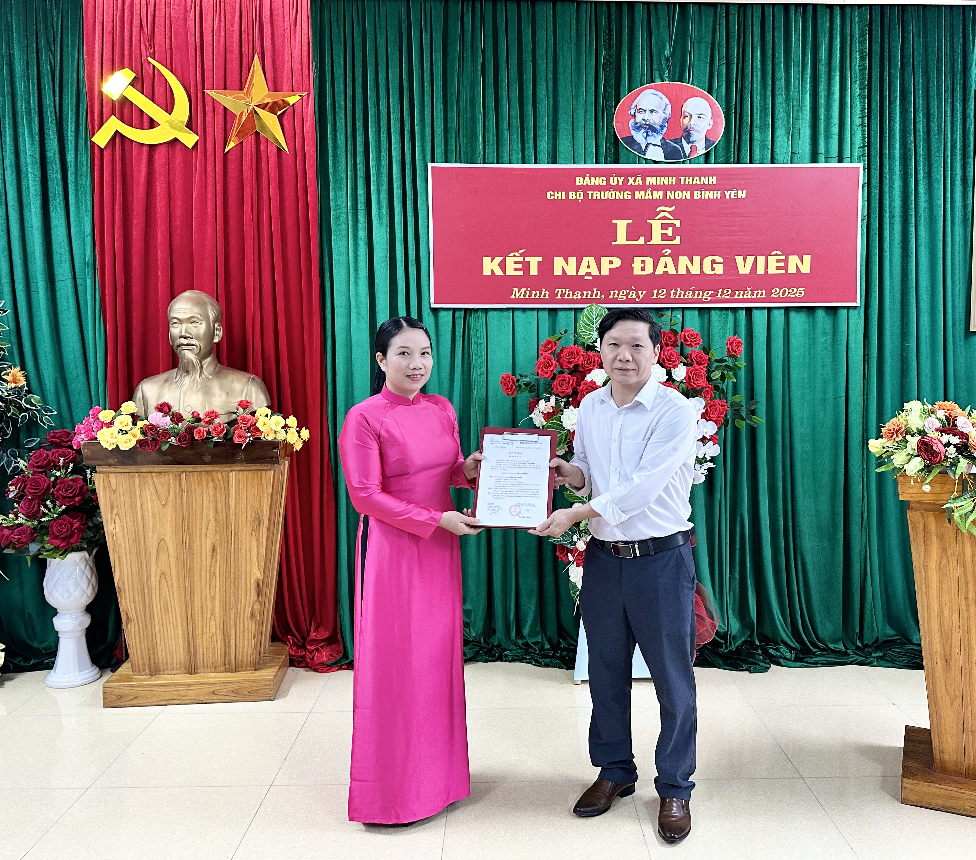 Tại buổi lễ, Chi bộ đã kết nạp 02 quần chúng ưu tú vào đảng, nâng tổng số đảng viên của Chi bộ lên 16 đảng viên. Dưới cờ Tổ quốc, cờ Đảng và chân dung Chủ tịch Hồ Chí Minh cùng sự chứng kiến của các đảng viên trong Chi bộ, 02 đồng chí đã tuyên thệ, hứa sẽ tiếp tục phấn đấu để luôn xứng đáng là người đảng viên gương mẫu, đóng góp sức mình thực hiện thành công nhiệm vụ của Chi bộ, góp phần xây dựng Chi bộ ngày càng vững mạnh.
