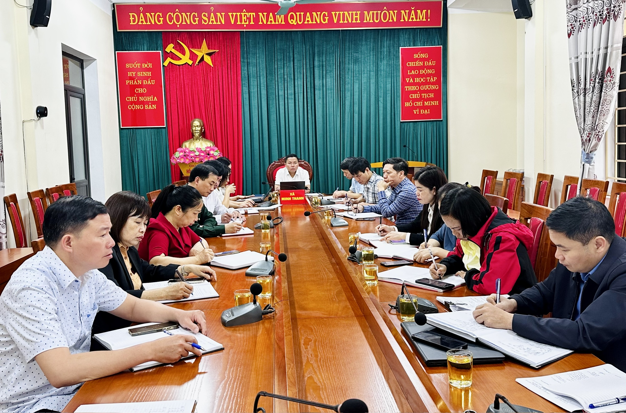 Tại điểm cầu các xã có các đồng chí trong Thường trực Đảng ủy, HĐND, UBND xã và Ban Thường vụ Đảng ủy các xã. Dự tại điểm cầu xã Minh Thanh có các đồng chí Hứa Thị Hà, Bí thư Đảng ủy, Chủ tịch HĐND xã; Hà Đình Cường, Phó Bí thư Thường trực Đảng ủy; Bùi Xuân Mừng, Phó Bí thư Đảng ủy, Chủ tịch UBND xã; các đồng chí Ủy viên BTV Đảng ủy, Ủy viên BCH Đảng bộ xã; lãnh đạo một số phòng ban chuyên môn liên quan.