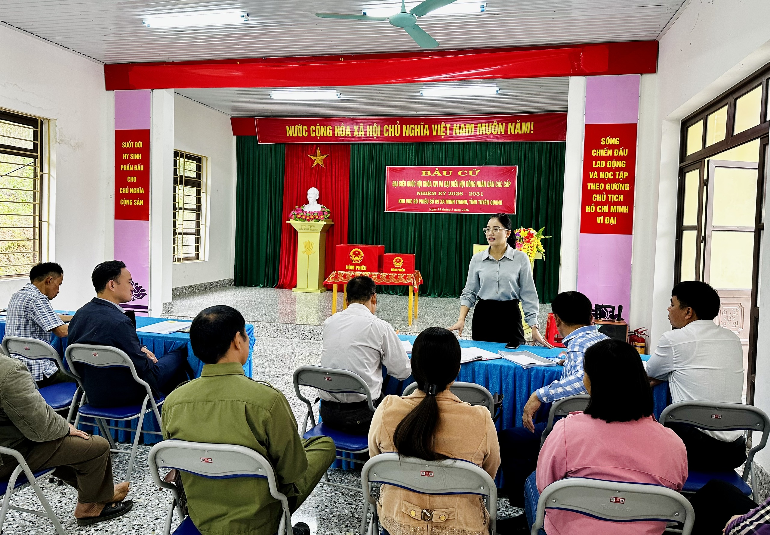 Đồng chí Bí thư Đảng ủy xã Hứa Thị Hà yêu cầu các tổ tiếp tục rà soát, chuẩn bị đầy đủ mọi điều kiện để đảm bảo cuộc bầu cử diễn ra đúng luật, dân chủ, an toàn, thực sự là ngày hội của toàn dân. Chuẩn bị chu đáo việc tổ chức Lễ khai mạc bầu cử tại các khu vực bỏ phiếu trên địa bàn đảm bảo trang trọng, đúng quy định; phân công nhiệm vụ cụ thể cho từng thành viên trong tổ bầu cử, thành viên phụ trách khu vực bỏ phiếu; tổ chức đón tiếp, hướng dẫn cử tri chu đáo, phục vụ cử tri tham gia bầu cử an toàn, thuận lợi để thực hiện đầy đủ quyền và nghĩa vụ của cử tri. Đồng thời tăng cường công tác tuyên truyền để người dân, cử tri hiểu rõ quyền và trách nhiệm, tạo khí thế sôi nổi phấn khởi trong toàn dân; nắm chắc tình hình địa bàn, bảo đảm an ninh trật tự, an toàn xã hội trước, trong và sau bầu cử.