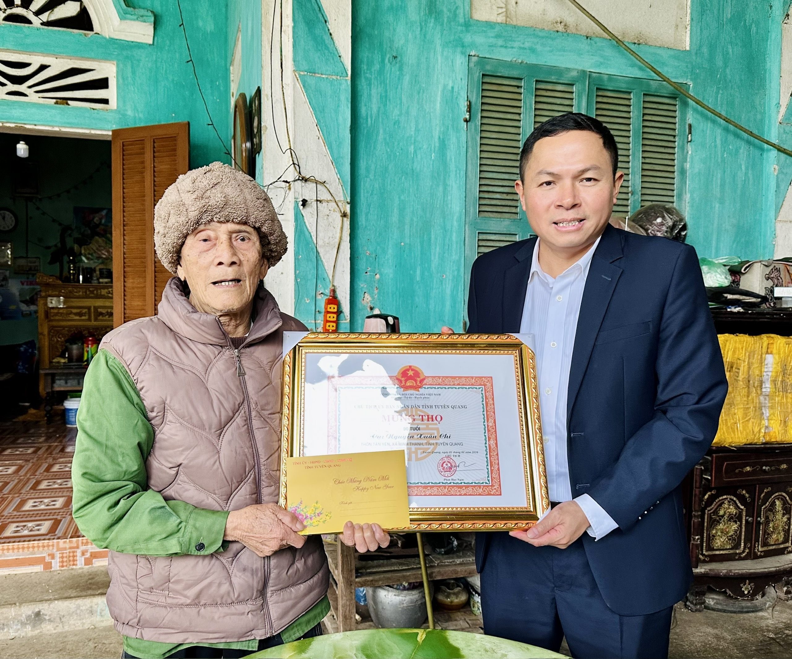Nhân dịp này, đồng chí đã trao quà chúc thọ và gửi lời chúc các cụ năm mới mạnh khỏe, trường thọ, tiếp tục phát huy vai trò, uy tín trong gia đình và cộng đồng, góp phần xây dựng địa phương ngày càng giàu đẹp, văn minh.