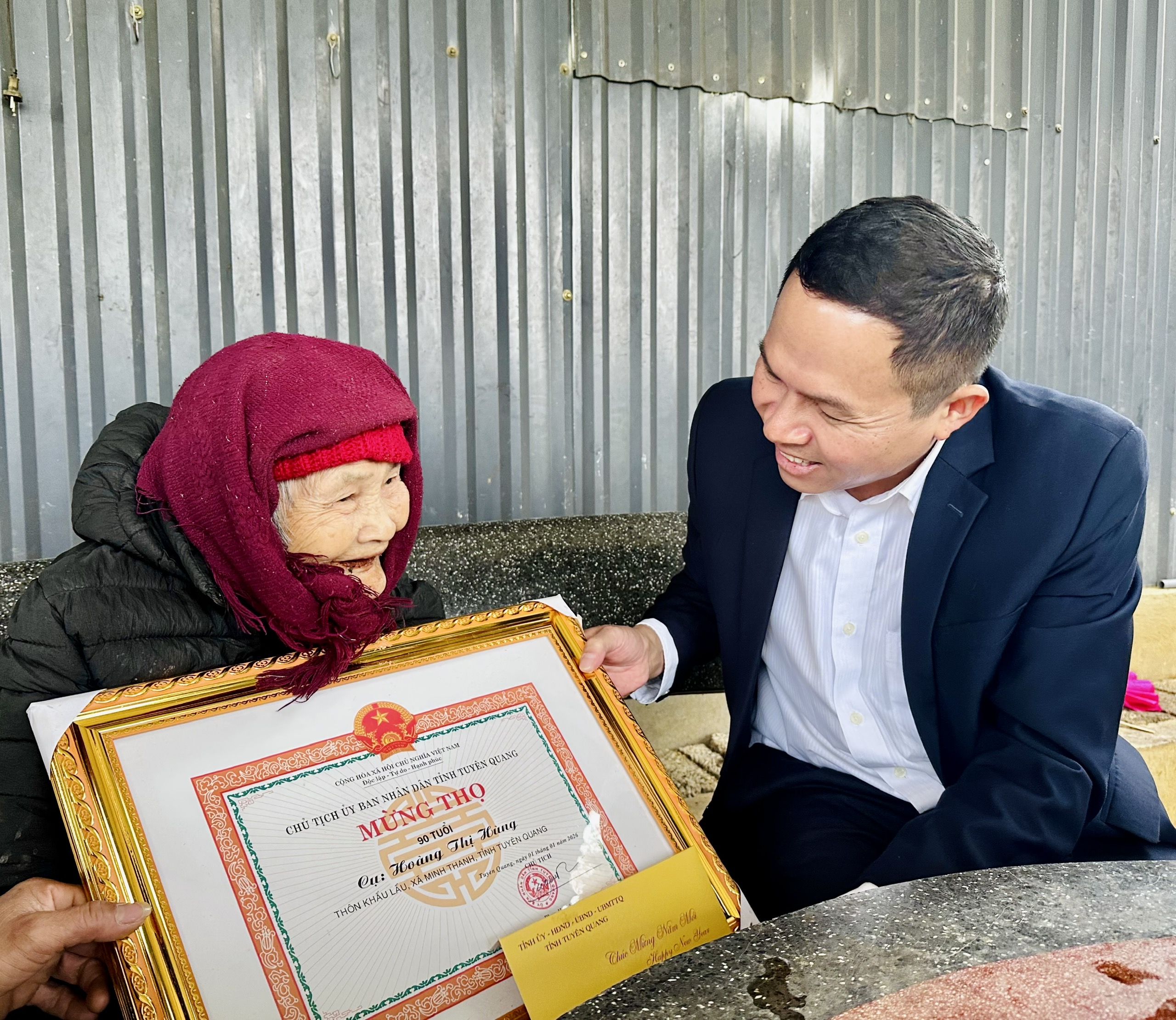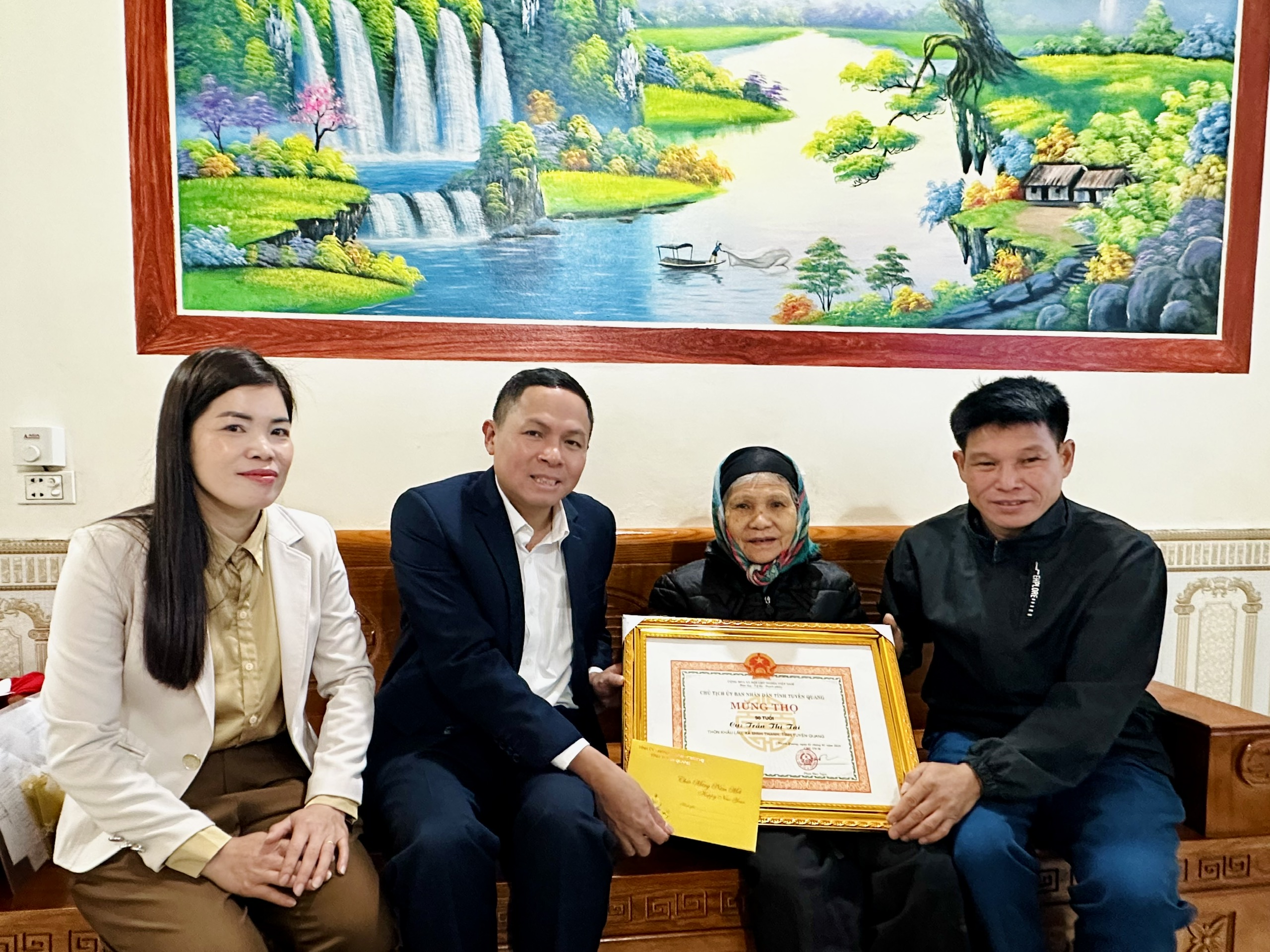 Đoàn đã đến thăm, tặng quà cụ Nguyễn Xuân Chí, 90 tuổi thôn Tân Yên; cụ Ma Thị Nhâm, 95 tuổi thôn Đồng Min; cụ Hoàng Thị Hùng, 90 tuổi và cụ Trần Thị Tài, 90 tuổi thôn Khấu Lấu. Tại các gia đình đến thăm, đồng chí Chủ tịch UBND xã ân cần thăm hỏi sức khỏe, đời sống sinh hoạt của các cụ; trân trọng ghi nhận và bày tỏ lòng biết ơn đối với những đóng góp quý báu của các bậc cao niên trong sự nghiệp xây dựng và phát triển quê hương.