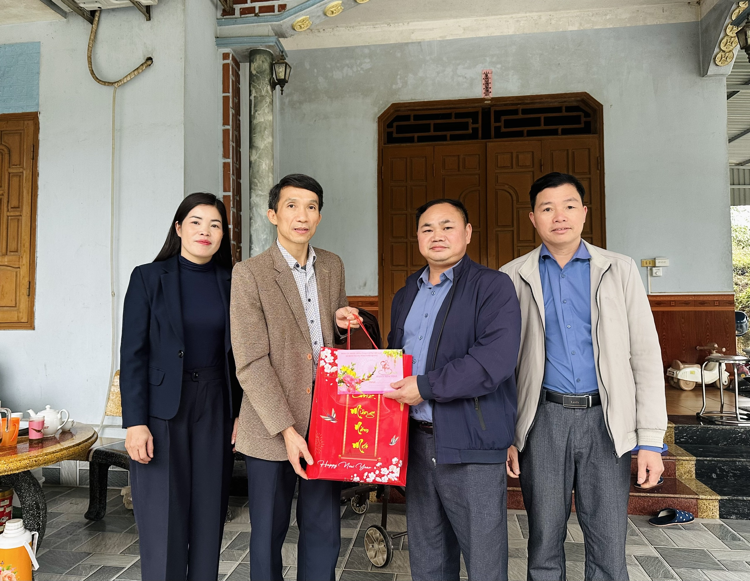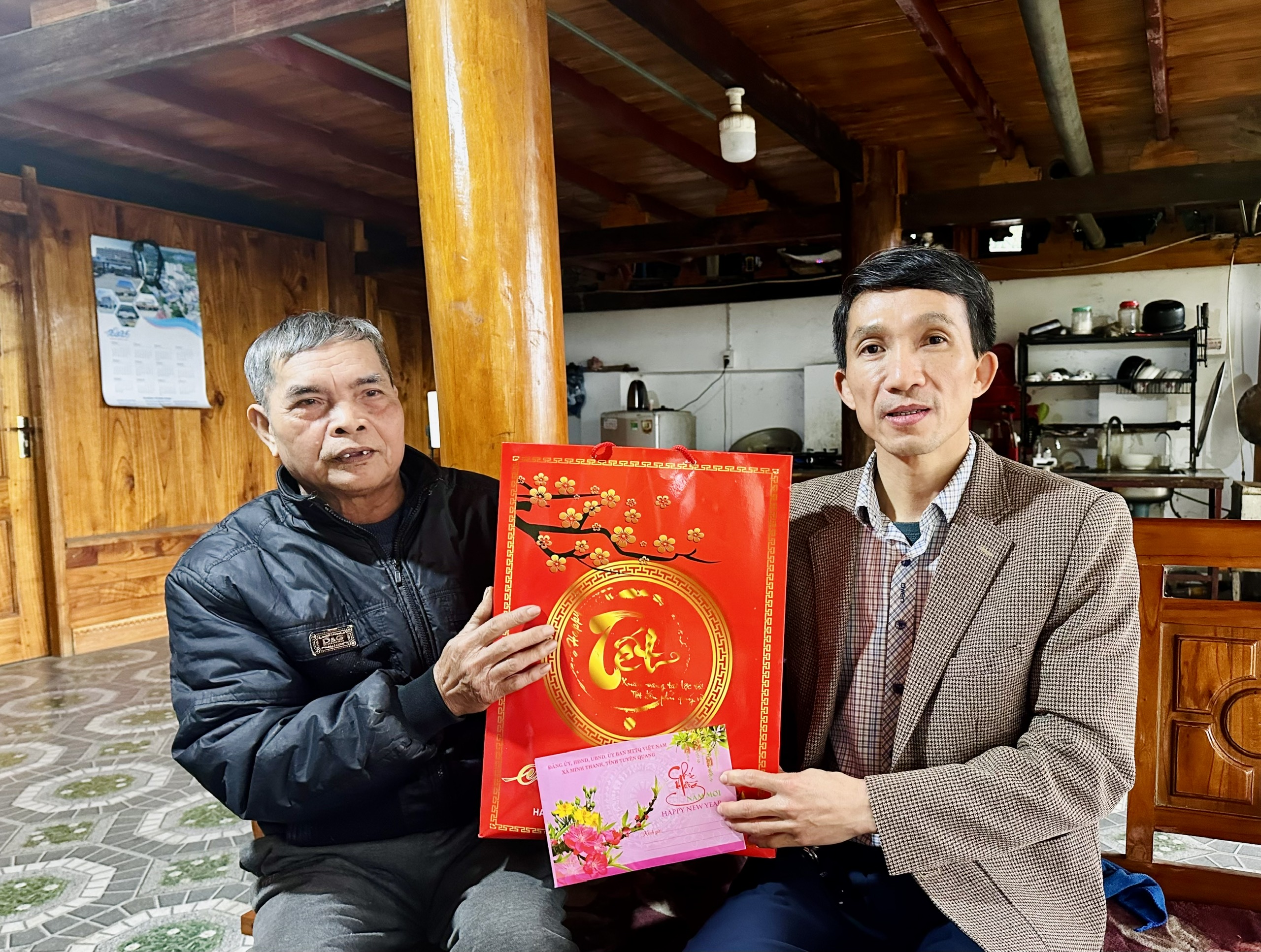 Đồng chí Hà Đình Cường, Phó Bí thư Thường trực Đảng ủy xã thăm, chúc Tết đồng chí Nông Văn Tường, Nguyên Bí thư Đảng ủy, Chủ tịch HĐND xã Lương Thiện.