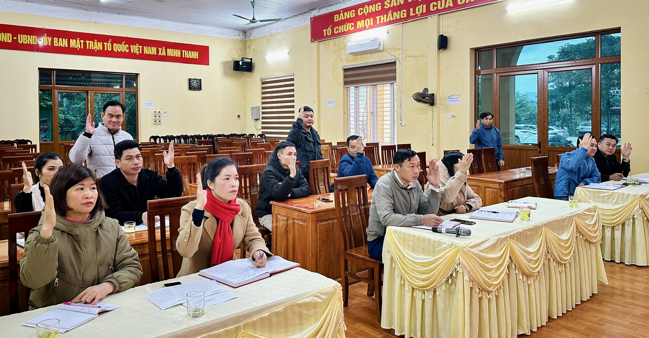 Trên cơ sở thông báo phân bổ cơ cấu, thành phần, số lượng người được giới thiệu ứng cử, hội nghị đã thảo luận, cho ý kiến đối với 13 đồng chí được dự kiến giới thiệu ứng cử đại biểu HĐND xã Minh Thanh, nhiệm kỳ 2026-2031. Hội nghị đã tiến hành các bước theo đúng quy trình, dân chủ, khách quan; thành lập Tổ kiểm phiếu và biểu quyết tín nhiệm bằng hình thức giơ tay. Kết quả, 100% đại biểu có mặt thống nhất giới thiệu 13 đồng chí tham gia ứng cử đại biểu HĐND xã, nhiệm kỳ 2026-2031.