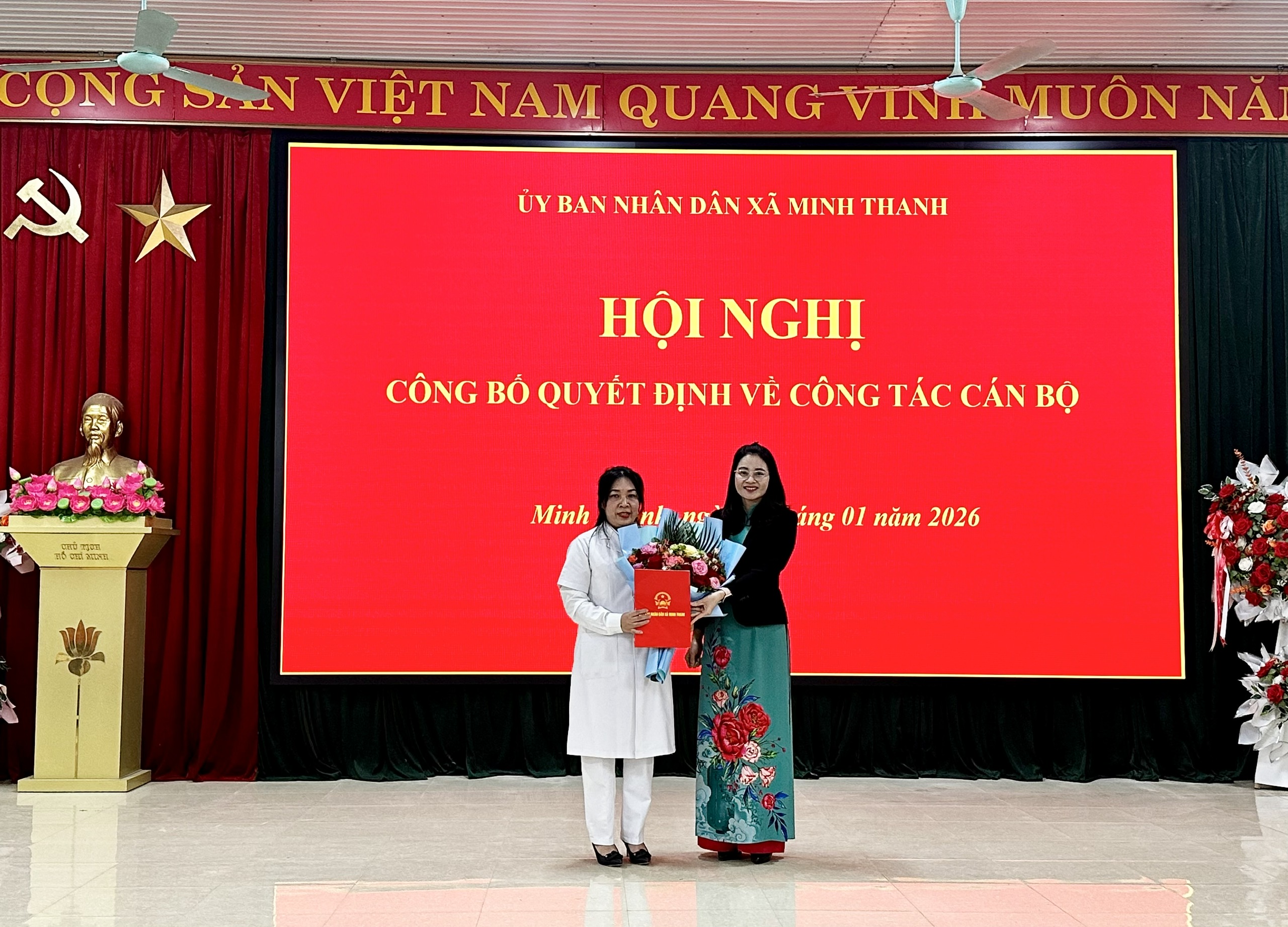 Tại hội nghị đã công bố Quyết định của UBND xã Minh Thanh về việc thành lập Trạm Y tế xã Minh Thanh và quy định chức năng, nhiệm vụ, quyền hạn và cơ cấu tổ chức của Trạm Y tế xã thuộc UBND xã Minh Thanh. Đồng thời, công bố Quyết định về việc bổ nhiệm viên chức giữ chức vụ lãnh đạo, quản lý đối với bà Nguyễn Thị Hường giữ chức Giám đốc Trạm Y tế xã Minh Thanh thuộc UBND xã Minh Thanh.