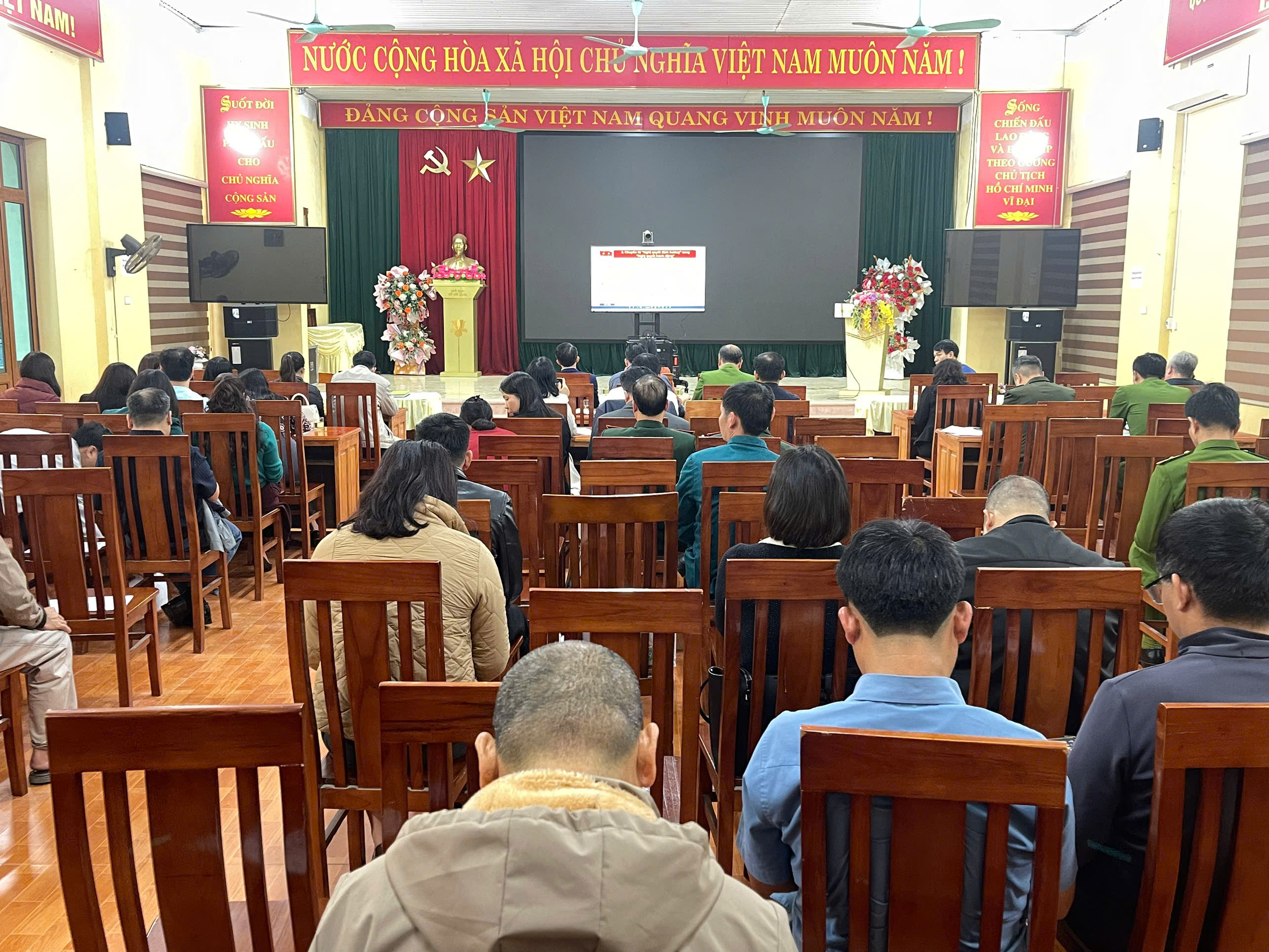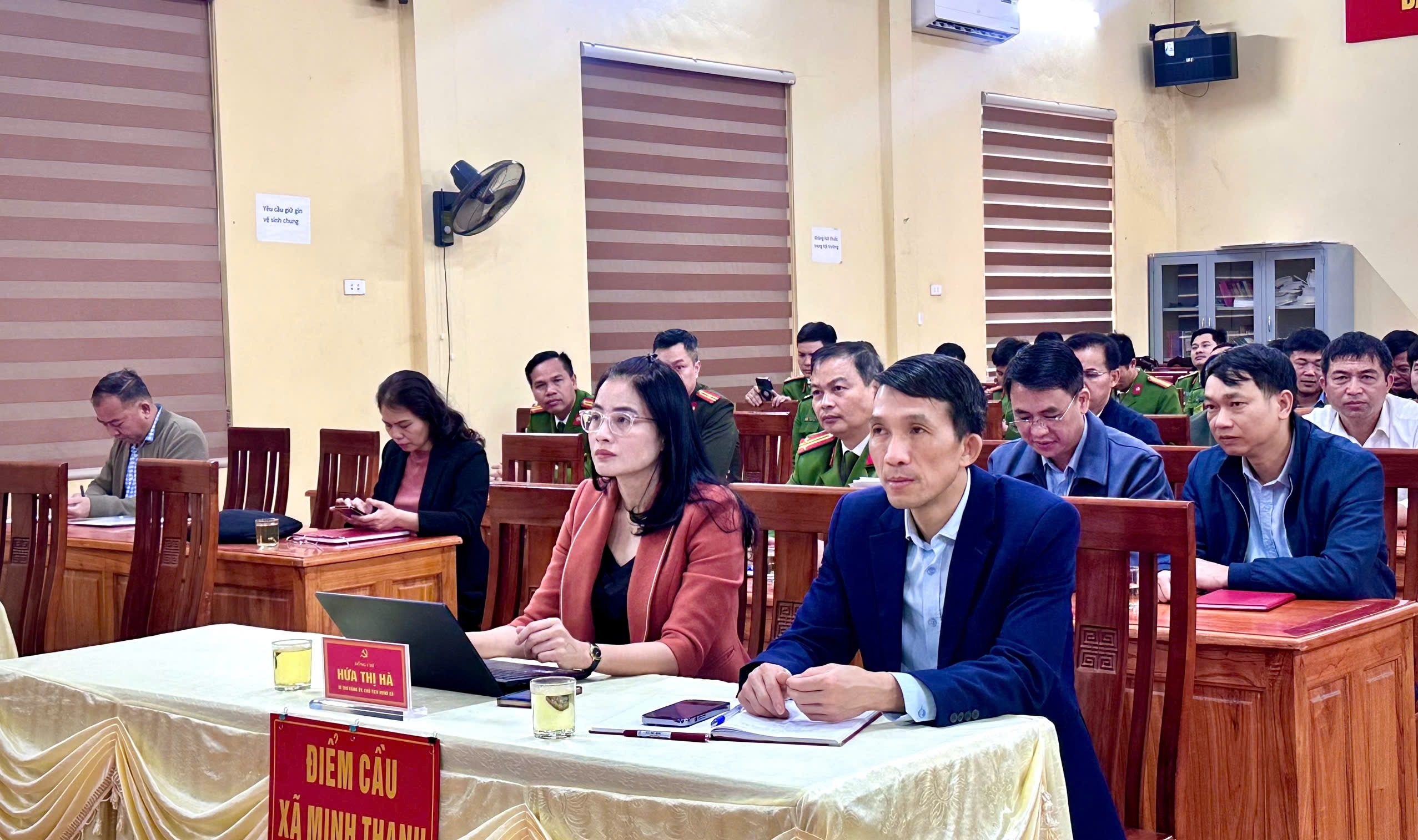 Tại điểm cầu xã Minh Thanh, đồng chí Hứa Thị Hà, Bí thư Đảng ủy, Chủ tịch HĐND xã; chủ trì hội nghị.