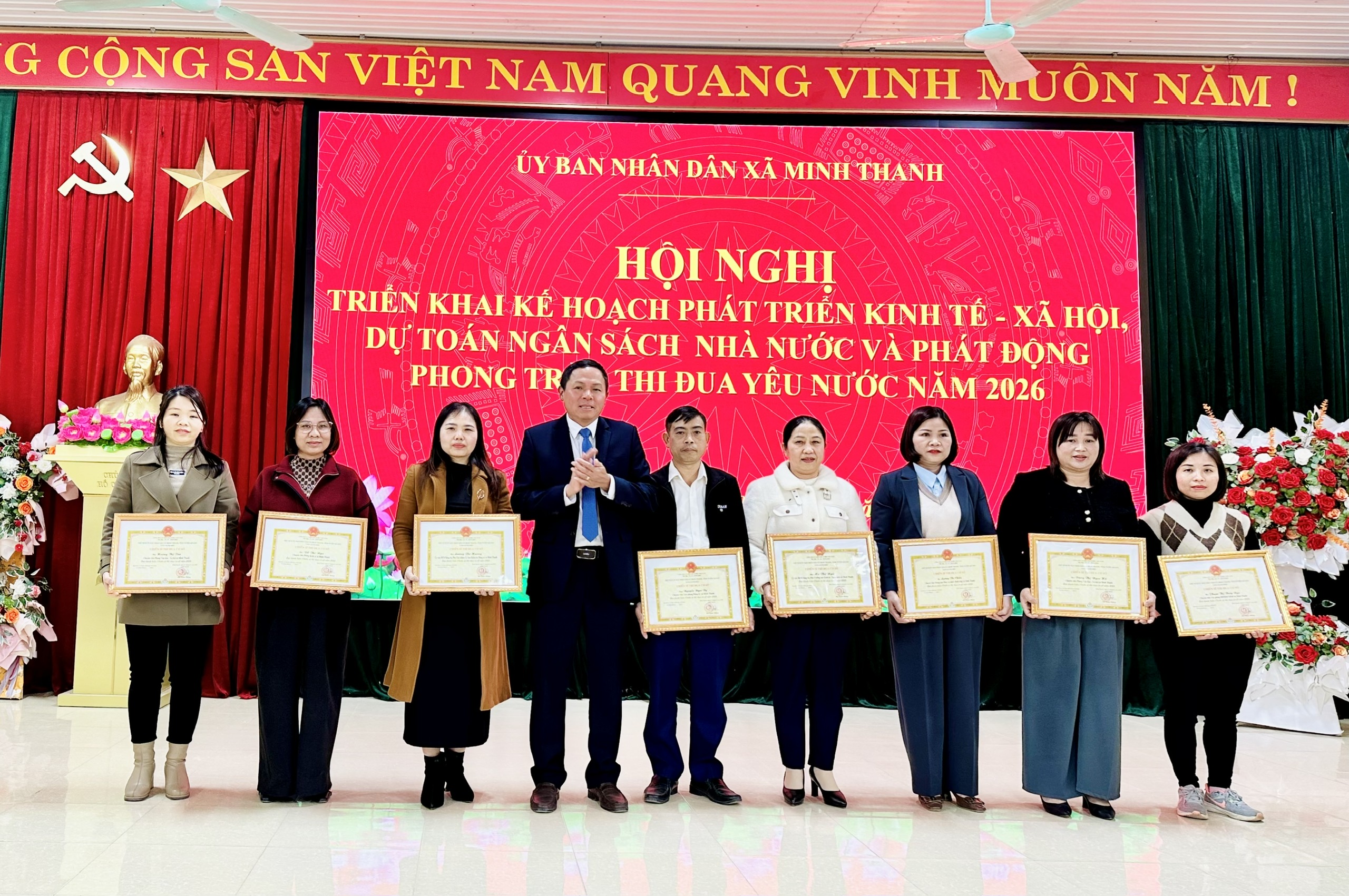 Nhân dịp này, UBND xã đã biểu dương, khen thưởng, trao danh hiệu “Chiến sĩ thi đua cơ sở”, “Lao động tiên tiến” cho các tập thể, cá nhân có thành tích xuất sắc trong phong trào thi đua năm 2025.