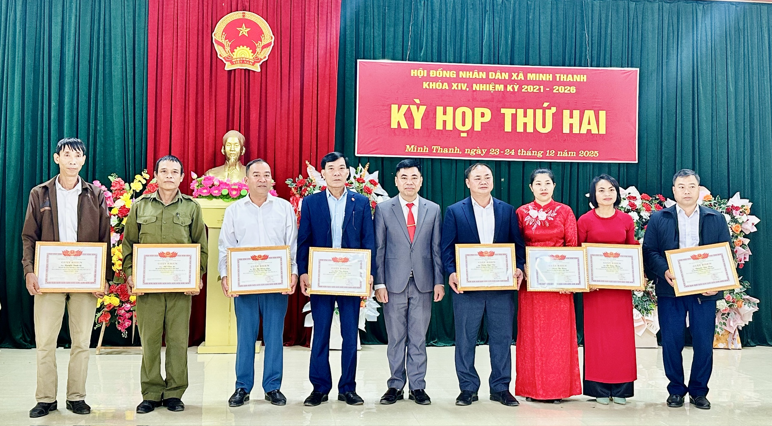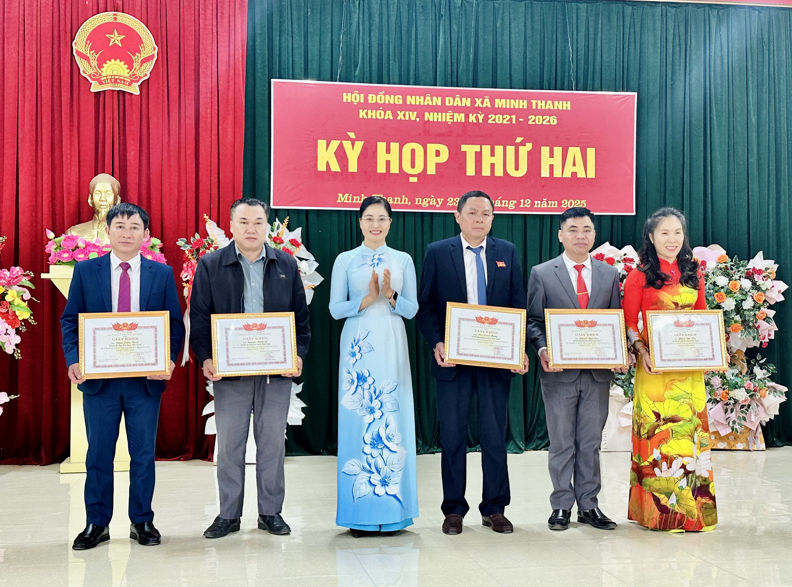 Nhân dịp này, Ủy ban nhân dân xã Minh Thanh đã khen thưởng, trao giấy khen cho 04 tập thể và 14 cá nhân đã có thành tích xuất sắc trong hoạt động Hội đồng nhân dân xã nhiệm kỳ 2021–2026.