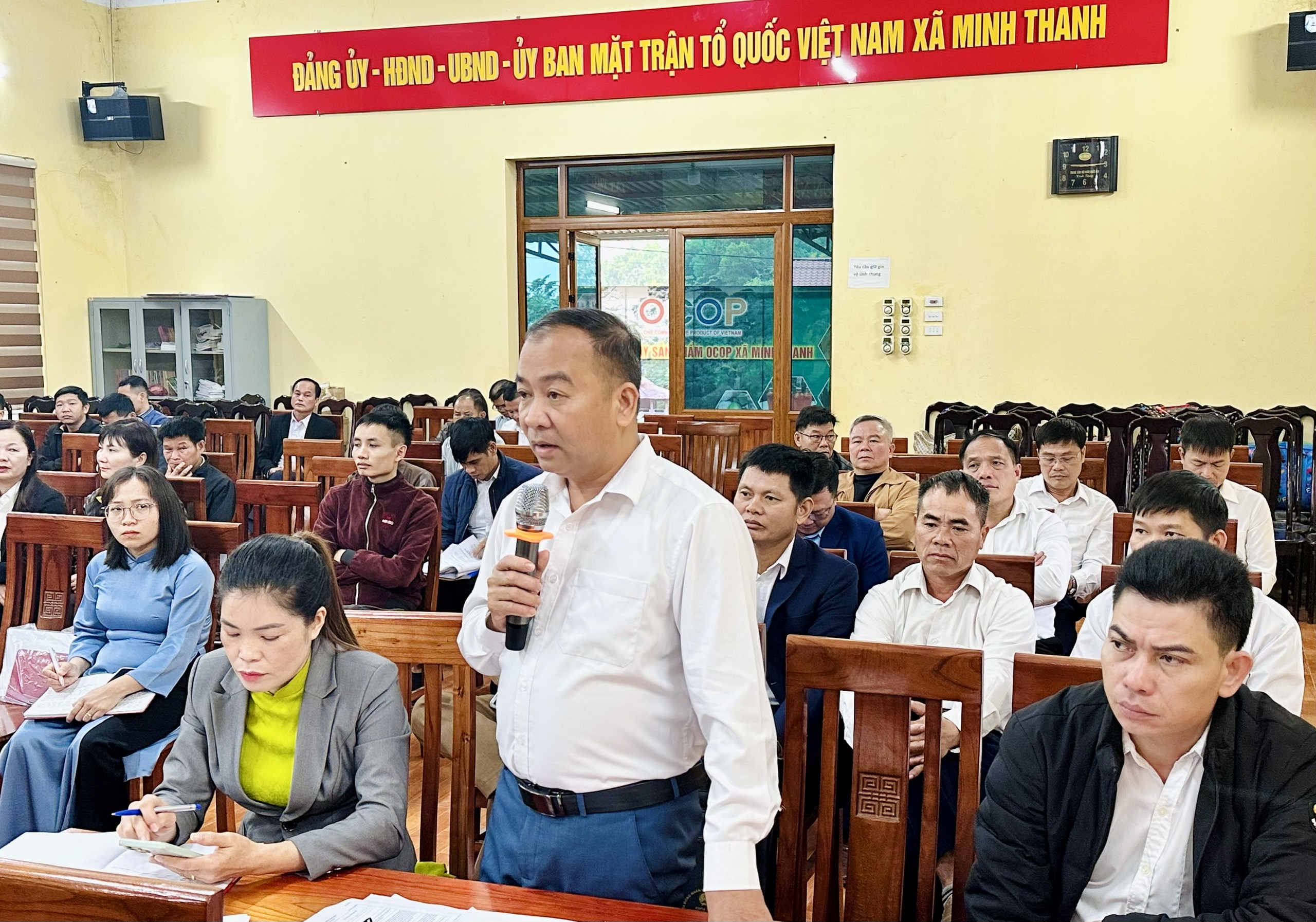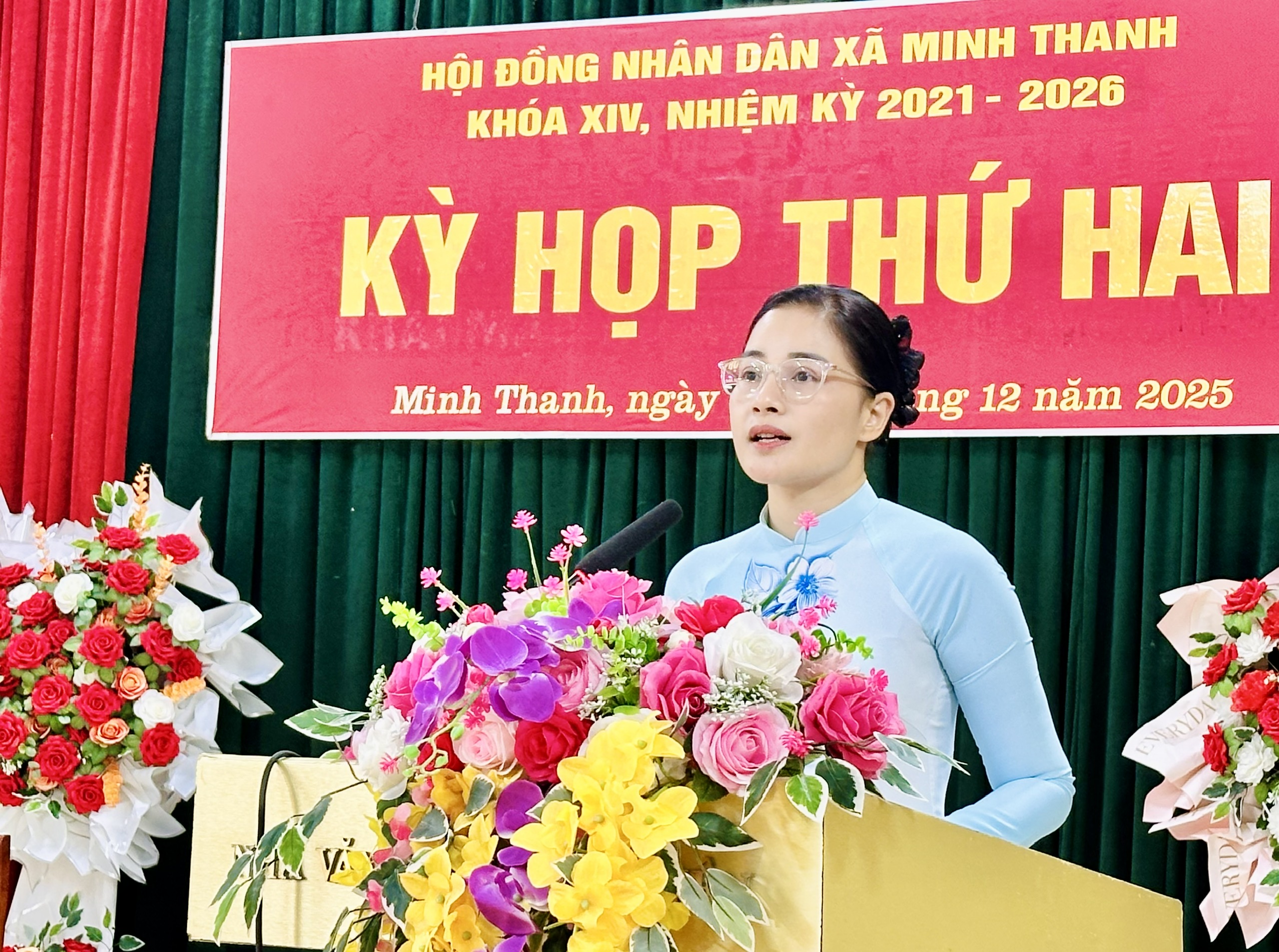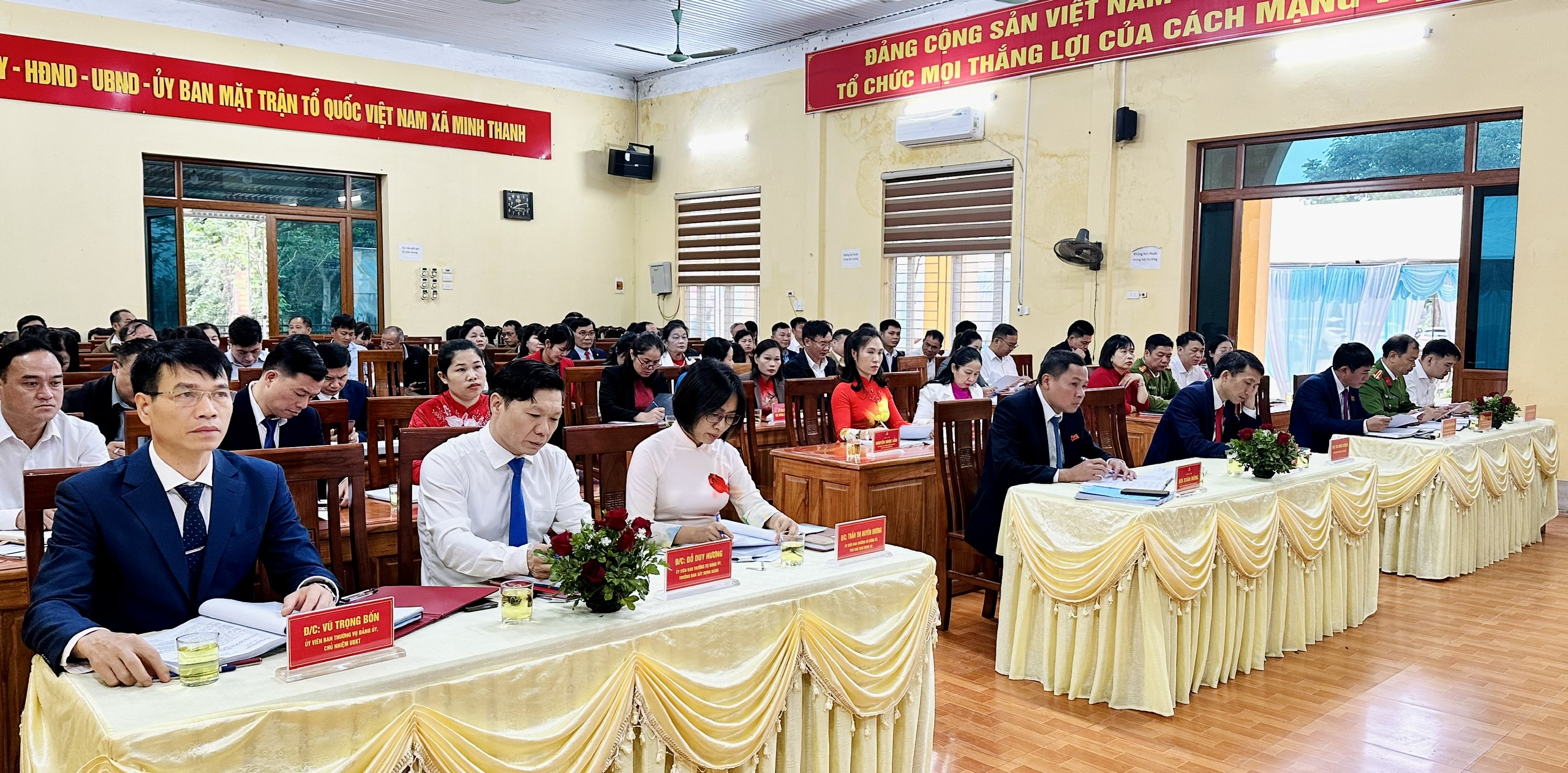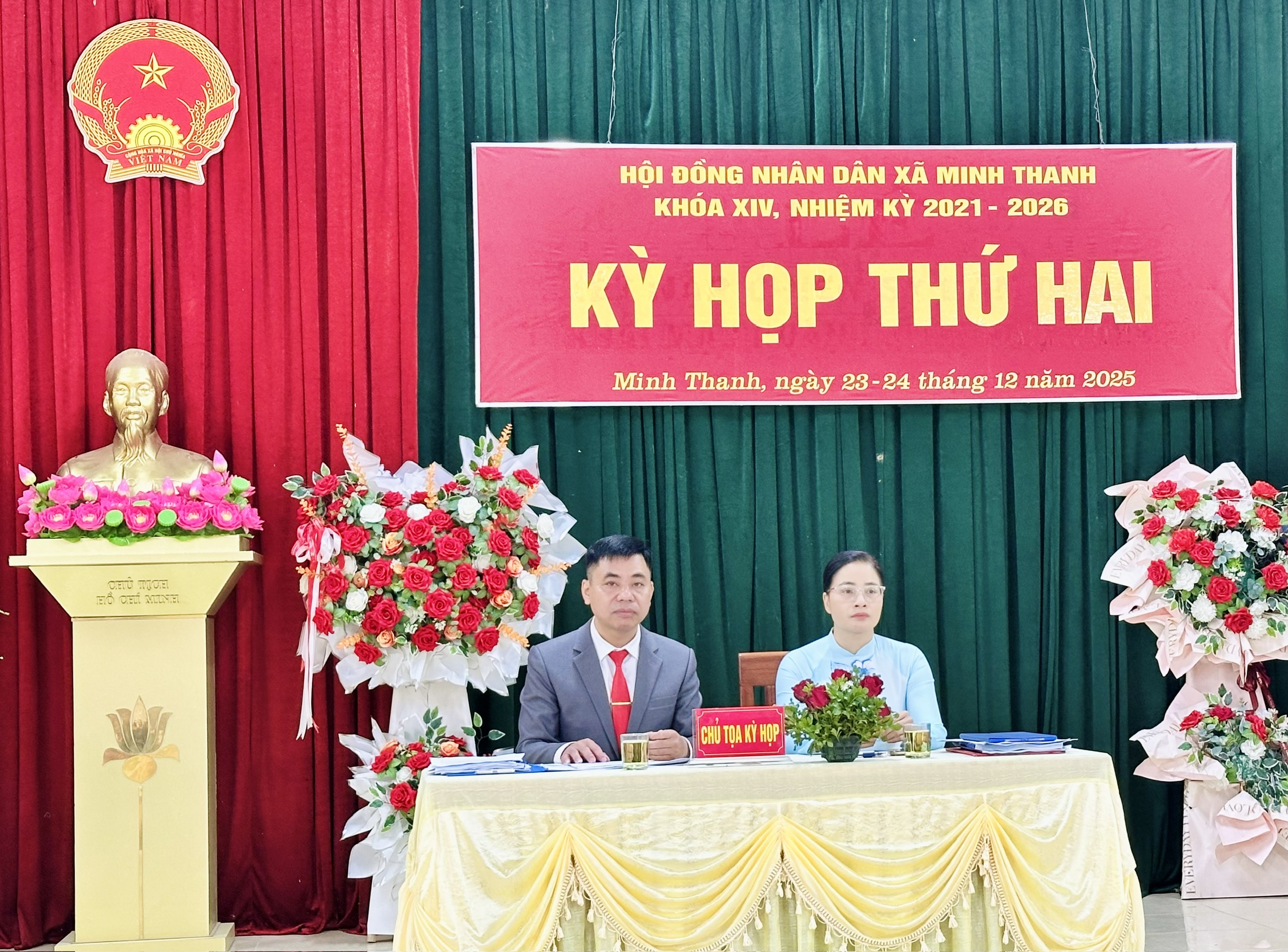 Đồng chí Hứa Thị Hà, Bí thư Đảng ủy, Chủ tịch HĐND xã Minh Thanh; Nguyễn Ngọc Sản, Ủy viên Ban Chấp hành Đảng bộ, Phó Chủ tịch HĐND xã, chủ trì phiên họp. Tham dự phiên họp có đồng chí Hà Đình Cường, Phó Bí thư Thường trực Đảng ủy xã; Bùi Xuân Mừng, Phó Bí thư Đảng uỷ, Chủ tịch UBND xã; cùng các đồng chí Ủy viên Ban Thường vụ Đảng ủy; Thường trực HĐND xã; lãnh đạo UBND xã; lãnh đạo Ủy ban Mặt trận Tổ quốc Việt Nam xã và các đại biểu HĐND xã khóa XIV. Đây là kỳ họp cuối cùng của HĐND xã nhiệm kỳ 2021 – 2026.
