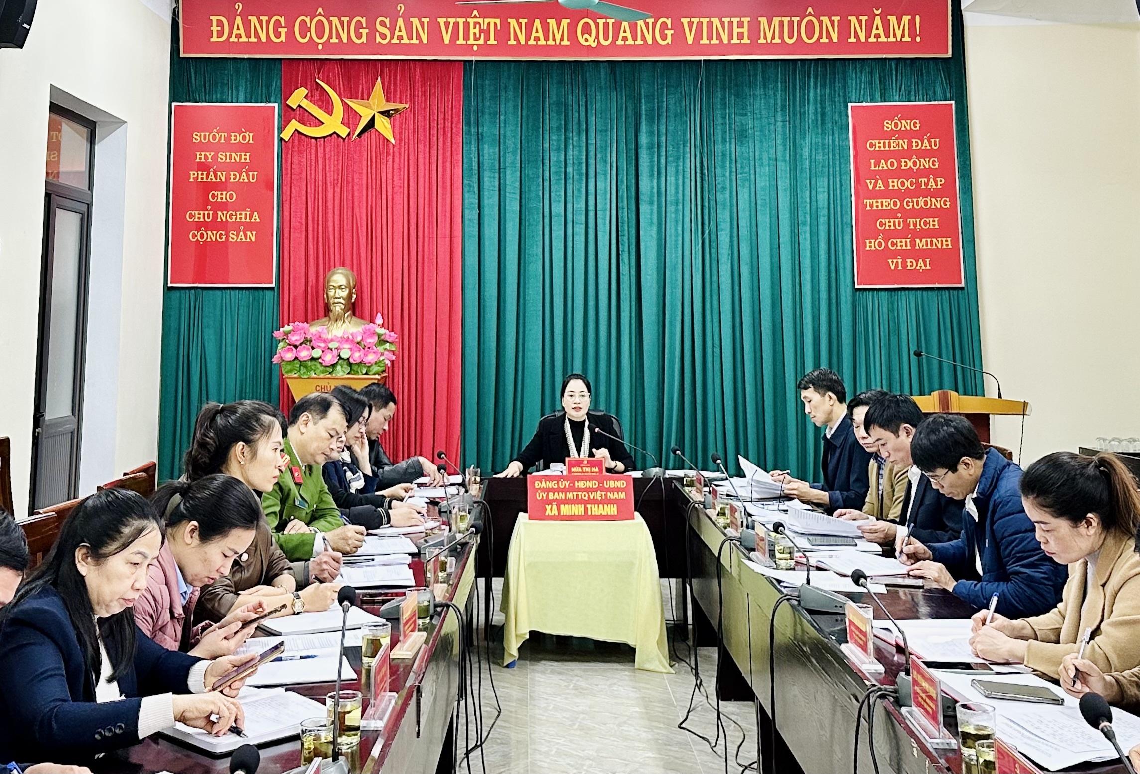 Phát biểu tại hội nghị, đồng chí Bí thư Đảng ủy, Chủ tịch HĐND xã, Trưởng Ban Chỉ đạo Hứa Thị Hà nhấn mạnh tầm quan trọng của cuộc bầu cử lần này; yêu cầu các thành viên Ban Chỉ đạo nêu cao tinh thần trách nhiệm, thực hiện nghiêm túc các mốc thời gian theo luật định; làm tốt công tác tham mưu, phối hợp chặt chẽ giữa các cơ quan, đơn vị, các thôn; đẩy mạnh công tác thông tin tuyên truyền sâu rộng trong nhân dân; đảm bảo việc triển khai các bước của quy trình bầu cử được tiến hành dân chủ, công khai, minh bạch, đúng quy định của pháp luật.