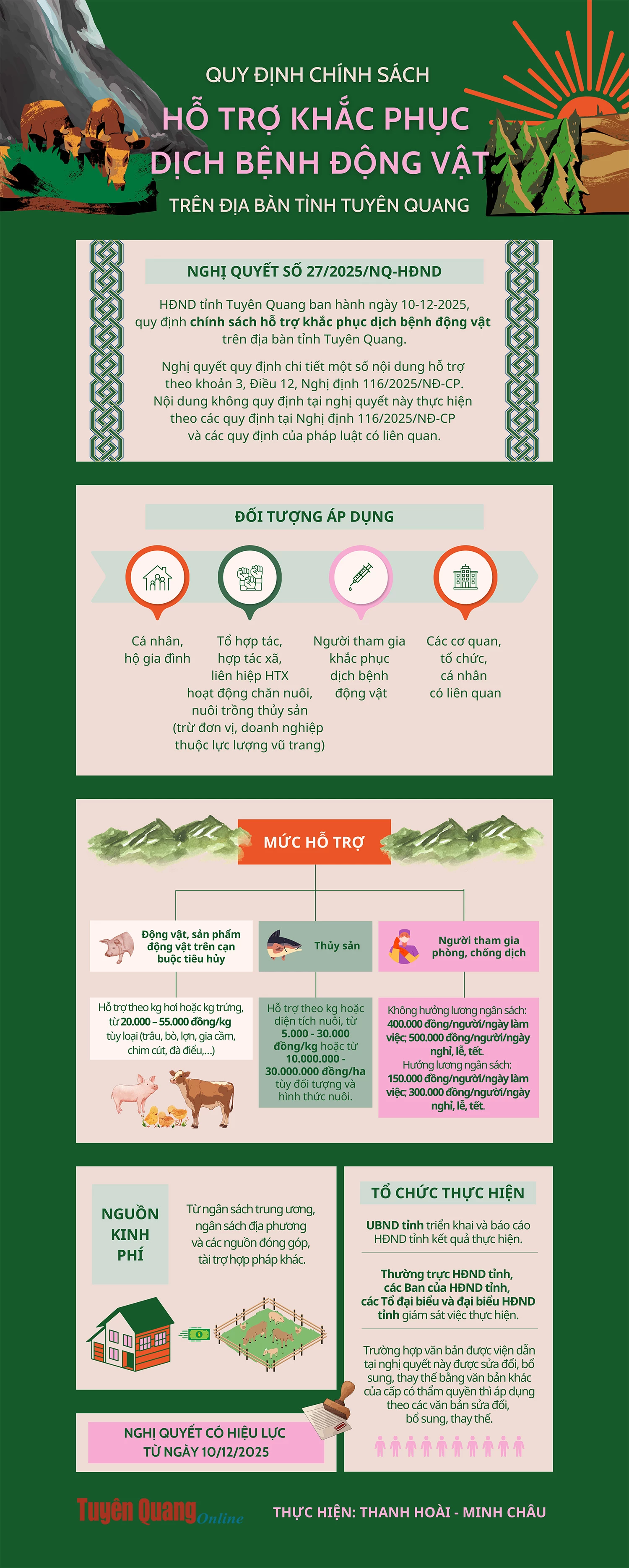HĐND tỉnh Tuyên Quang ban hành Nghị quyết số 27/2025/NQ-HĐND ngày 10/12/2025 Quy định chính sách hỗ trợ khắc phục dịch bệnh động vật trên địa bàn tỉnh Tuyên Quang.