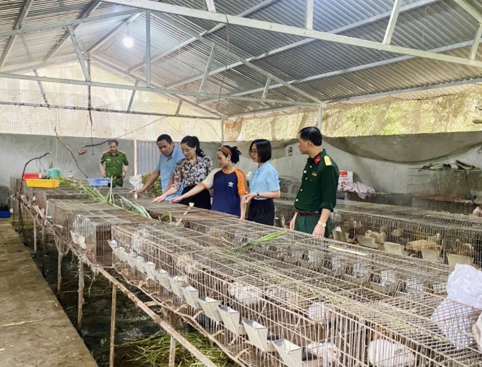 Tiếp đó, đoàn đến thăm, khảo sát mô hình nuôi thỏ giống, thỏ thương phẩm kết hợp nuôi chuột cảnh và gà rừng của hộ ông Lý Tiến Bình thôn Khuân Mản. Đây là hướng phát triển kinh tế mang tính linh hoạt, tận dụng tốt diện tích chuồng trại và nguồn thức ăn sẵn có. Các vật nuôi được chăm sóc theo quy trình phù hợp, đảm bảo sinh trưởng tốt và cho hiệu quả kinh tế. Đặc biệt, việc kết hợp nhiều loại vật nuôi đã giúp gia đình chủ động hơn trong đầu ra sản phẩm, đồng thời mở rộng thêm cơ hội tiếp cận các thị trường tiêu thụ khác nhau.