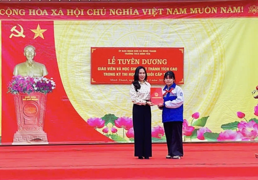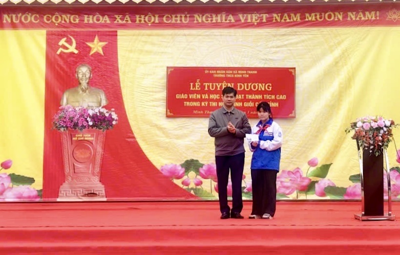Tại chương trình, đồng chí Hà Thị Hồng Liên, Ủy viên BCH Đảng bộ, Phó Chủ tịch UBND xã đã trao quà khen thưởng và chúc mừng em Hoàng Linh Giang đã đạt giải trong kỳ thi; đồng thời ghi nhận, biểu dương sự nỗ lực, tâm huyết của cô giáo Phạm Thị Thu Hiền, giáo viên phụ trách ôn luyện và các thầy cô giáo trong nhà trường. Đồng chí mong muốn nhà trường tiếp tục phát huy truyền thống dạy tốt, học tốt, chú trọng công tác phát hiện, bồi dưỡng học sinh giỏi, góp phần nâng cao chất lượng giáo dục tại địa phương.