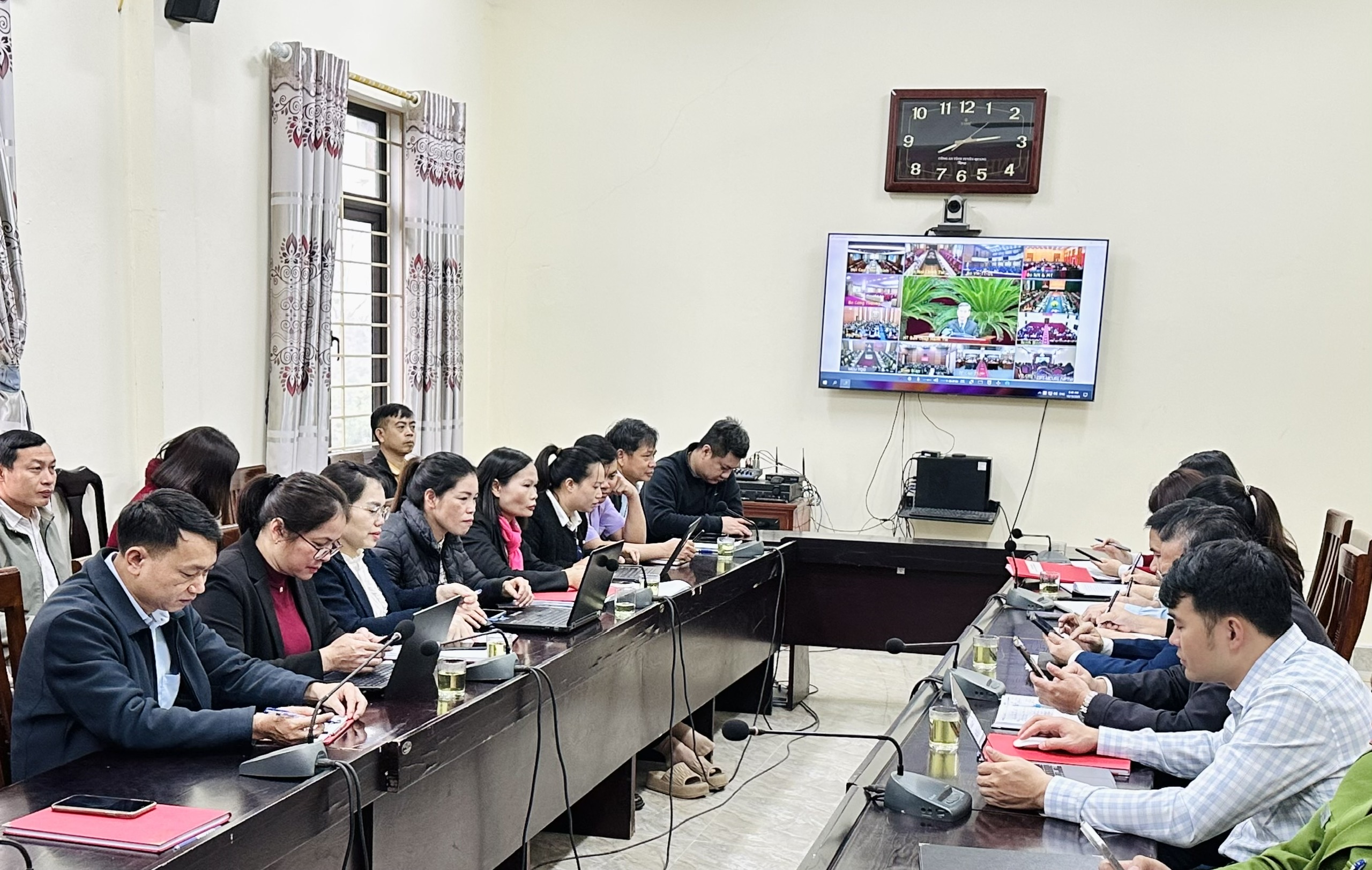 Tại điểm cầu xã Minh Thanh, đồng chí Hà Đình Cường, Phó Bí thư Thường trực Đảng ủy xã, dự và chủ trì hội nghị.