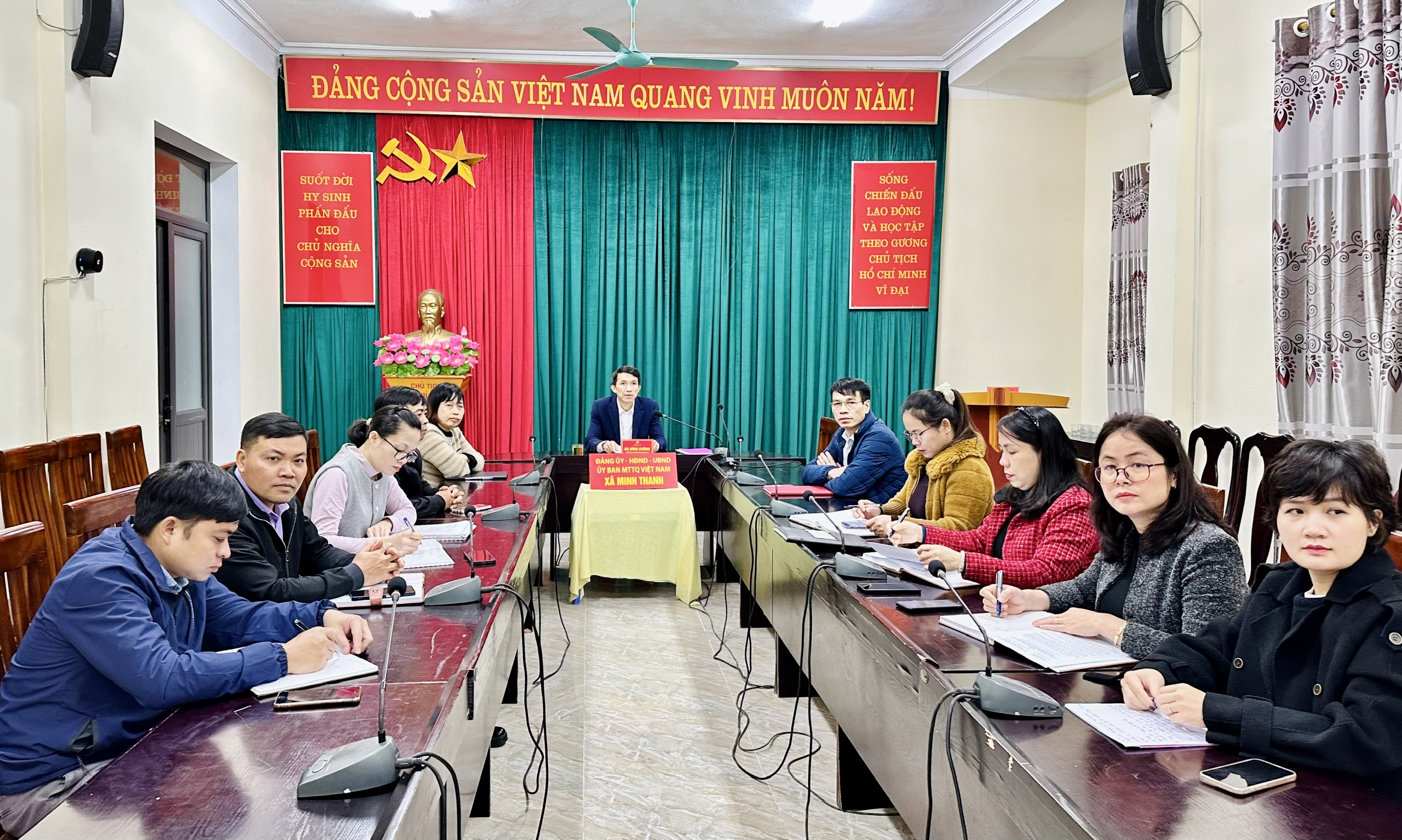 Dự tại điểm cầu xã Minh Thanh có đồng chí Hà Đình Cường, Phó Bí thư Thường trực Đảng ủy xã chủ trì hội nghị. Cùng dự có đồng chí Vũ Trọng Bốn, Ủy viên BTV Đảng ủy, Chủ nhiệm UBKT Đảng ủy; các đồng chí lãnh đạo Văn phòng Đảng ủy, Ban Xây dựng Đảng, Phòng Văn hóa - Xã hội xã.