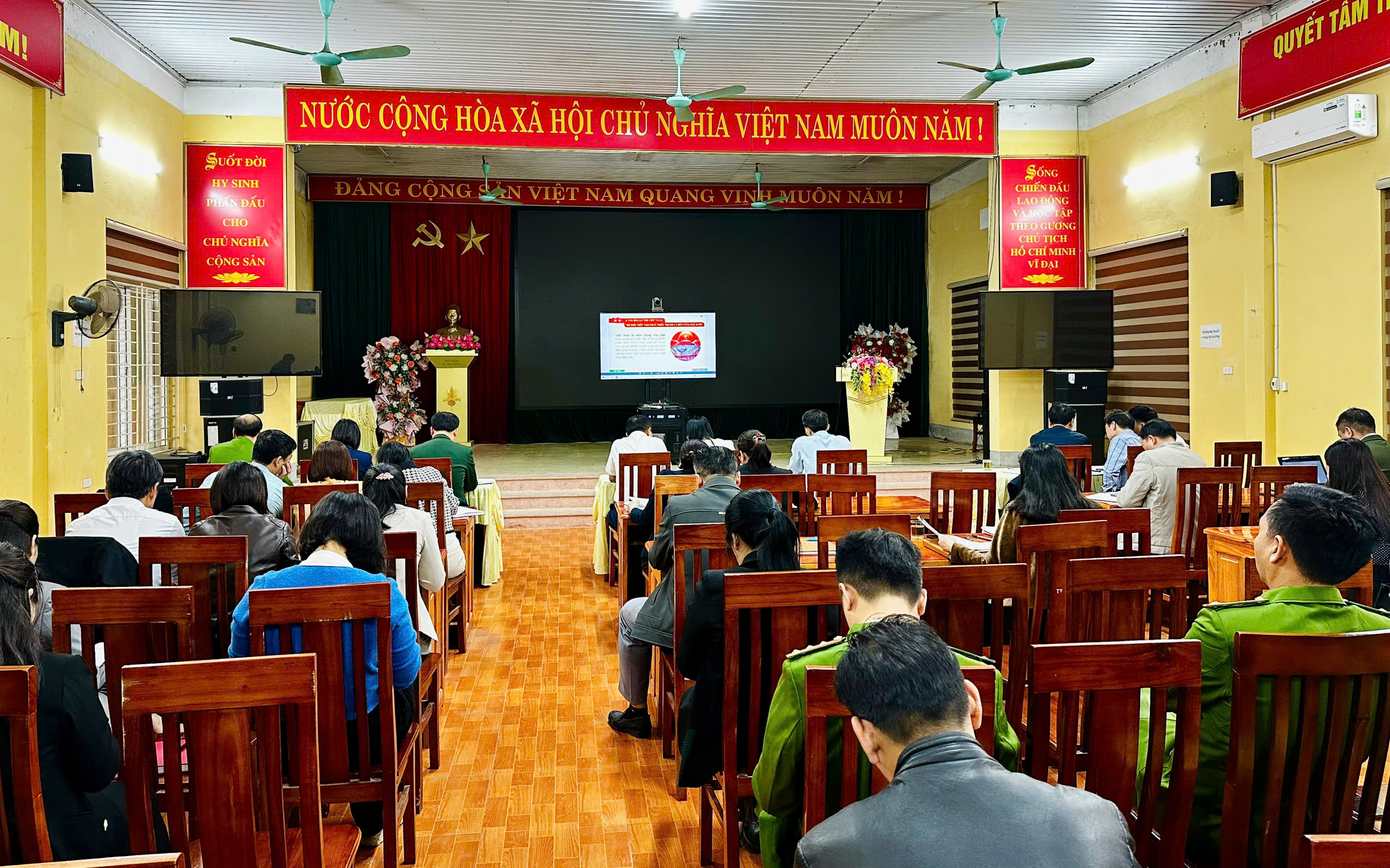 Quang cảnh hội nghị tại điểm cầu xã Minh Thanh.