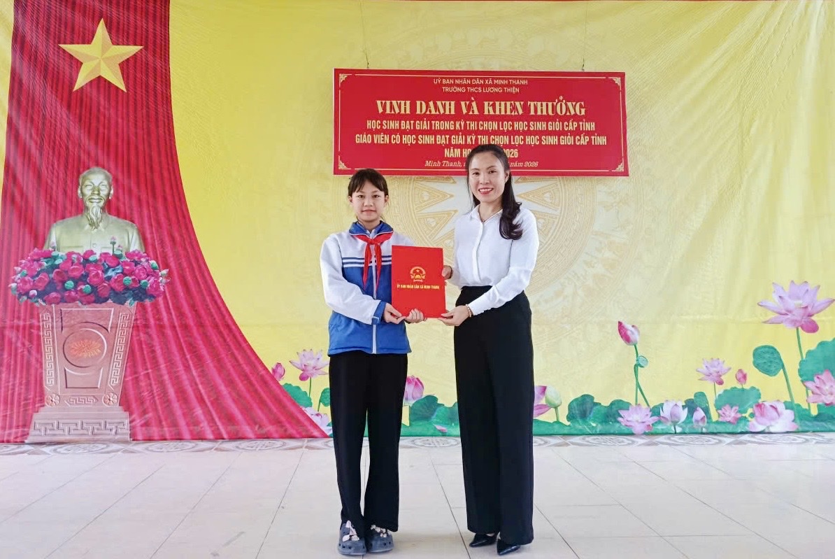 Sáng ngày 16-3, Trường THCS Lương Thiện tổ chức vinh danh và khen thưởng giáo viên và học sinh đạt thành tích cao tại Kỳ thi chọn học sinh giỏi cấp tỉnh lớp 9 THCS năm học 2025 – 2026. Dự chương trình có đồng chí Hà Thị Hồng Liên, Ủy viên BCH Đảng bộ, Phó Chủ tịch UBND xã, Chủ tịch Hội Khuyến học xã Minh Thanh.